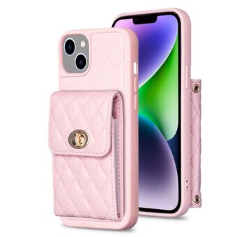 For iPhone 14 Vertical Metal Buckle Wallet Rhombic Leather Phone Case(Pink)