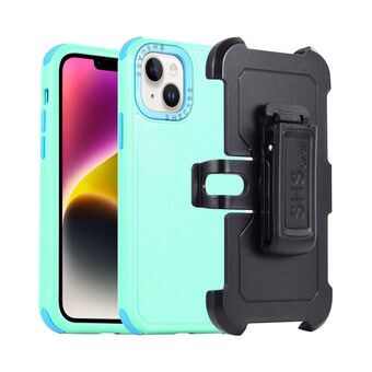 For iPhone 14 3 in 1 PC + TPU Sliding Sleeve Phone Case(Grass Green+Sky Blue)