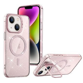 For iPhone 14 Shiny Shield MagSafe Lens Holder Phone Case(Pink)