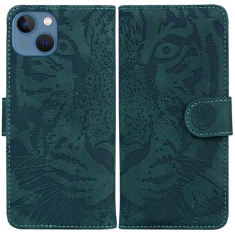 For iPhone 14 Tiger Embossing Pattern Leather Phone Case(Green)