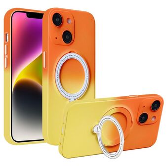 For iPhone 14 Gradient TPU MagSafe Holder Phone Case(Orange Yellow)