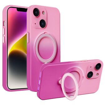 For iPhone 14 Gradient TPU MagSafe Holder Phone Case(Pink Red)