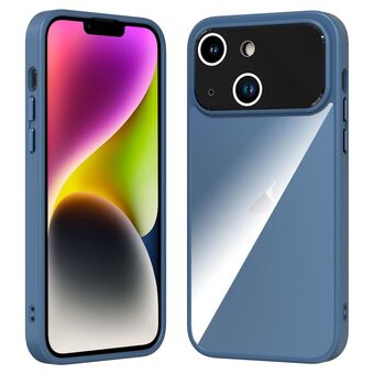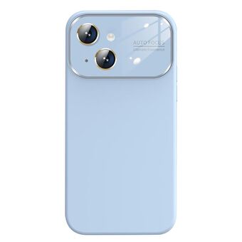 For iPhone 14 Liquid Silicone Large Glass Window Phone Case(Blue)