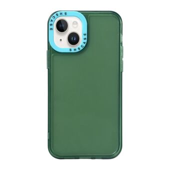 For iPhone 14 Color Contrast Lens Frame Transparent TPU Phone Case(Green + Sky Blue)