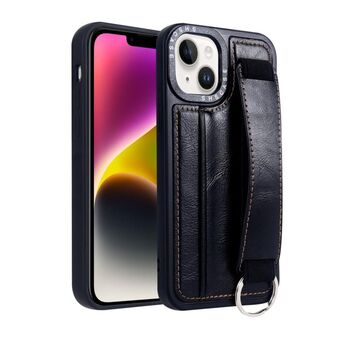For iPhone 14 Photo Frame Card Wallet Wrist Strap Holder Back Cover Phone Case(Black)