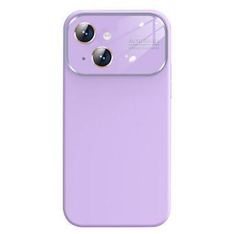 For iPhone 14 Liquid Silicone Large Glass Window Phone Case(Light Purple)