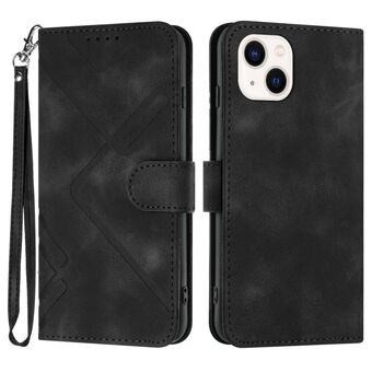 For iPhone 14 Line Pattern Skin Feel Leather Phone Case(Black)