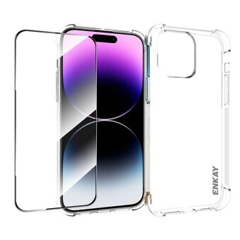 For iPhone 14 Pro Max ENKAY Hat-Prince Transparent TPU Shockproof Phone Case with Glass Film (ENKAY)