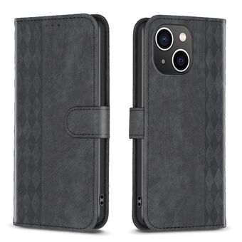 For iPhone 14 Plaid Embossed Leather Phone Case(Black)