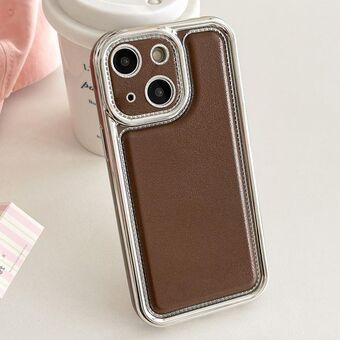 For iPhone 14 Electroplated Edge Frosted Leather TPU Phone Case(Coffee Color)