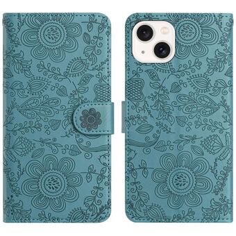 For iPhone 14 Floral Embossed Pattern Leather Phone Case(Dark Green)