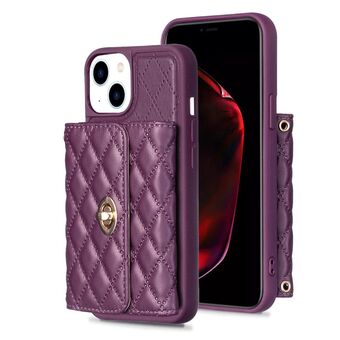 For iPhone 14 Double Buckle Rhombic PU Leather Phone Case(Purple)