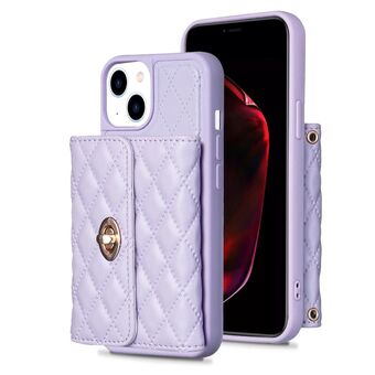 For iPhone 14 Horizontal Metal Buckle Wallet Rhombic Leather Phone Case(Purple)