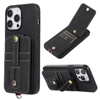 For iPhone 14 Shockproof Leather Phone Case with Wrist Strap(Black)