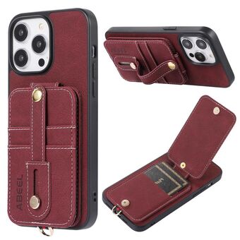 For iPhone 14 ABEEL Litchi Texture Card Bag PU Phone Case(Khaki)