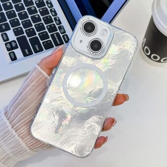 For iPhone 14 Plating Texture MagSafe TPU Phone Case with Glitter Lens Film(White Water Ripples)