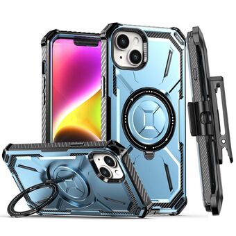 For iPhone 14 Armor Series Holder Phone Case with Back Clip(Blue)