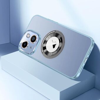 For iPhone 14 Plating Texture MagSafe TPU Phone Case with Glitter Lens Film(White Tinfoil Texture)