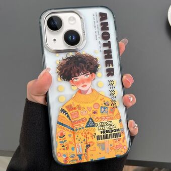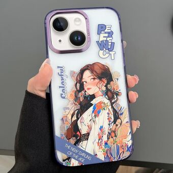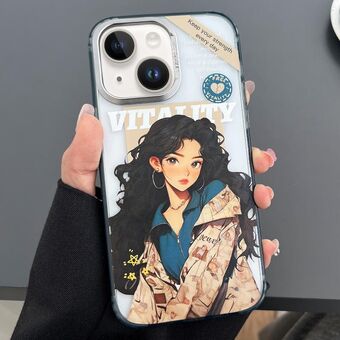 For iPhone 14 Engraved Colorful Cartoon Phone Case(Trendy Girl)