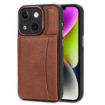 For iPhone 14 Denior Oil Wax Leather Electroplating Card Slot Holder Phone Case(Brown) (Denior)