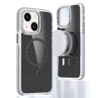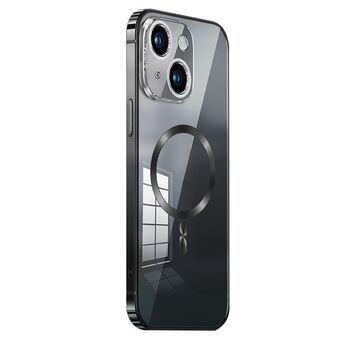 For iPhone 14 MagSafe Magnetic Stainless Steel Frame Transparent TPU Phone Case(Black)