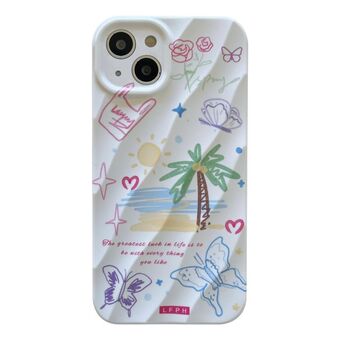 For iPhone 14 2 in 1 Minimalist Pattem PC Shockproof Phone Case(Coconut Tree)