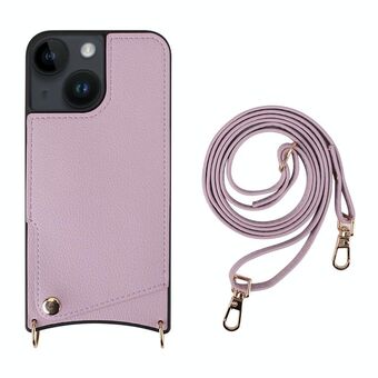 For iPhone 14 Fish Tail Card Slot PU + TPU Phone Case with Long Lanyard(Purple)