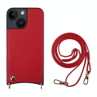 For iPhone 14 Fish Tail Card Slot PU + TPU Phone Case with Long Lanyard(Red)