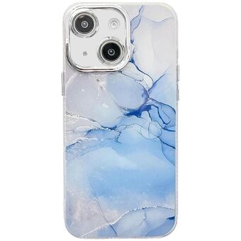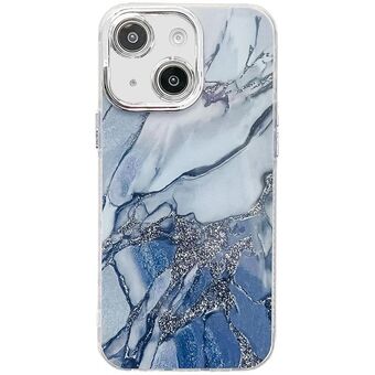 For iPhone 14 Electroplated Marble Texture Phone Case(Purple Blue M18)