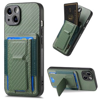 For iPhone 14 Carbon Fiber Card Bag Fold Stand Phone Case(Green)