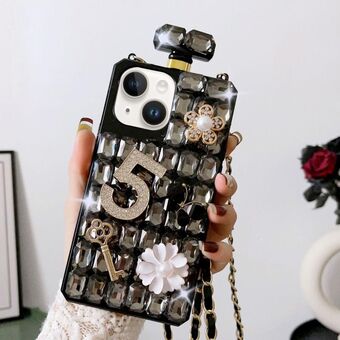 For iPhone 14 Crossbody Perfume Bottle Handmade Inlaid Diamond PC Phone Case(Black)