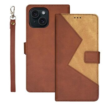 For iPhone 15 idewei Two-color Splicing Leather Phone Case(Brown) (idewei)