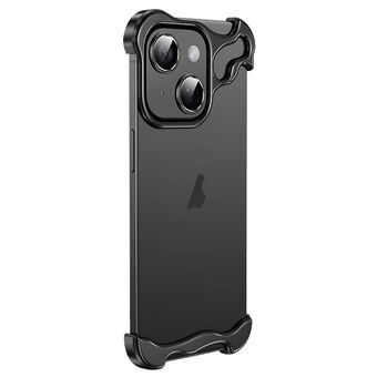 For iPhone 15 Frameless Metal Corner Pad Phone Case with Lens Film(Black)