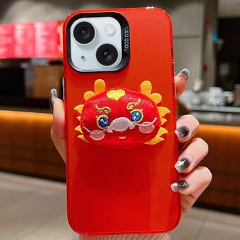 For iPhone 15 New Year Lion Dance Plush Doll Phone Case(Dragon)