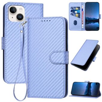 For iPhone 15 YX0070 Carbon Fiber Buckle Leather Phone Case with Lanyard(Light Purple)