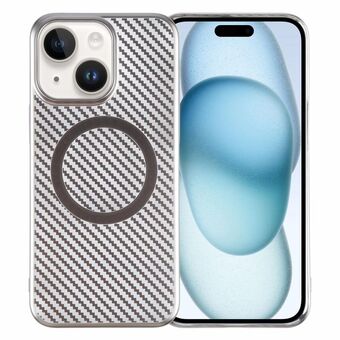 For iPhone 15 6D Plated Carbon Fiber Clear Magsafe PC Phone Case(Titanium Grey)