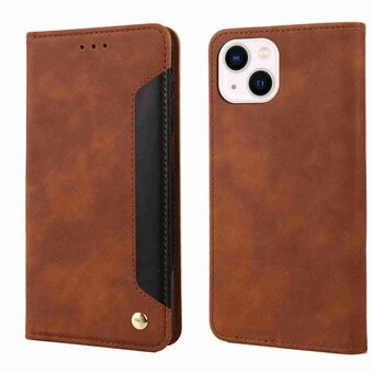 For iPhone 15 Skin Feel Splicing Leather Phone Case(Brown)