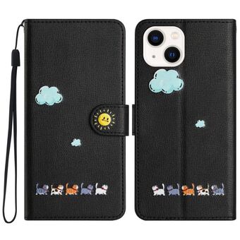 For iPhone 15 Cartoon Cats Leather Phone Case(Black)