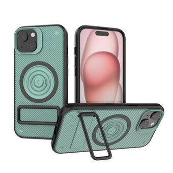 For iPhone 15 Carbon Fiber Texture PC + TPU Phone Case with Metal Holder(Green)