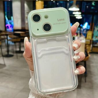 For iPhone 15 Large Window PC Hybrid TPU Phone Case with Card Slot(Green)