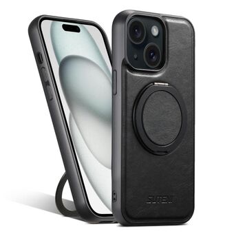 For iPhone 15 Suteni G3 Oil Wax 360 Rotation Holder MagSafe Back Phone Case(Black) (Suteni)