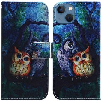 For iPhone 15 Coloured Drawing Flip Leather Phone Case(Oil Painting Owl)