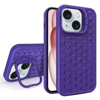 For iPhone 15 Honeycomb Radiating Lens Holder Magsafe Phone Case(Purple)