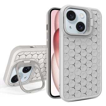 For iPhone 15 Honeycomb Radiating Lens Holder Magsafe Phone Case(Grey)