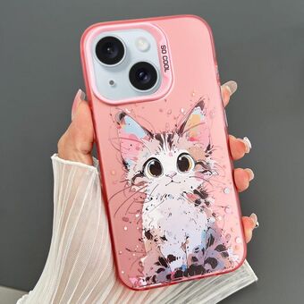 For iPhone 15 Dual-sided IMD Animal Graffiti TPU + PC Phone Case(Stunned Cat)
