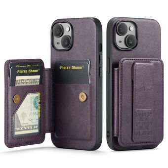 For iPhone 15 Fierre Shann Oil Wax Cow Leather Card Holder Back Phone Case(Purple) (FIERRE SHANN)