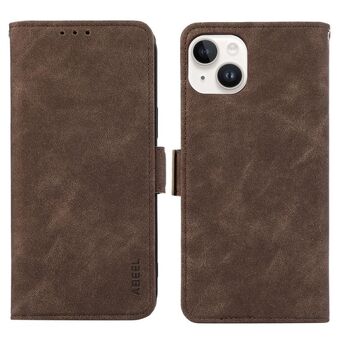 For iPhone 15 ABEEL Frosted Magnetic RFID Leather Phone Case(Brown)