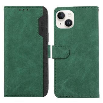 For iPhone 15 ABEEL Color Block Magnetic RFID Leather Phone Case(Green-Black)