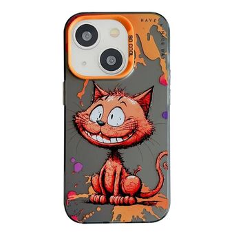 For iPhone 15 Animal Pattern Oil Painting Series PC + TPU Phone Case(Smiling Cat)
