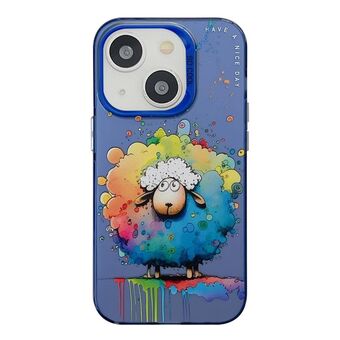 For iPhone 15 Animal Pattern Oil Painting Series PC + TPU Phone Case(Sheep)